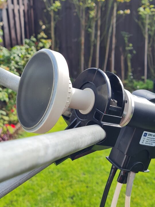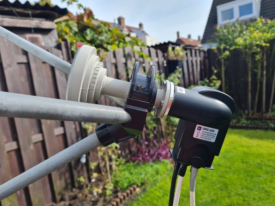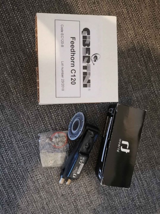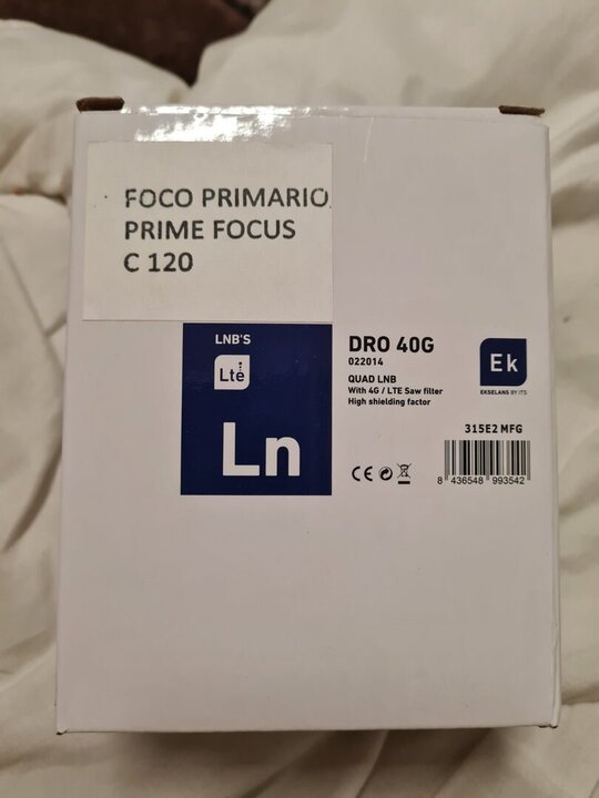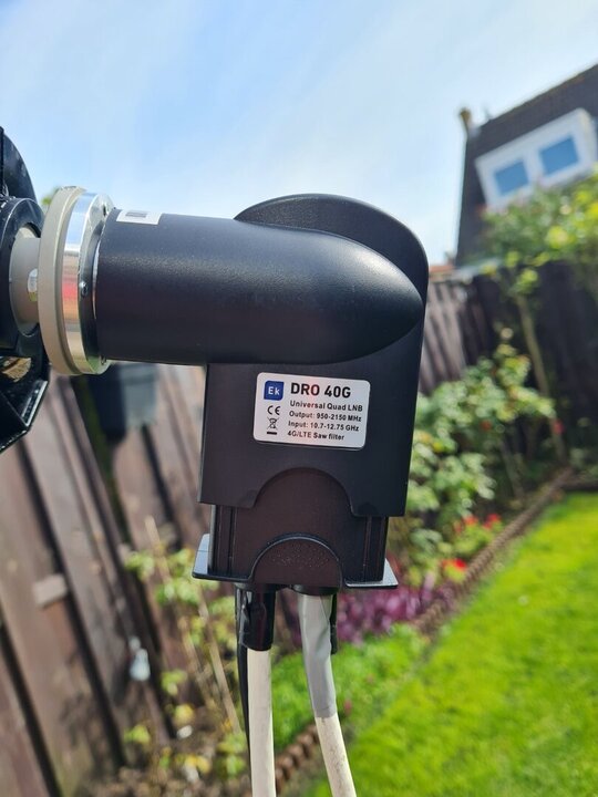 Skyware( channel master) c120 feedhorn Ik betaalde € 140 en EK DRO 40G Quad Flange LNB betaalde € 120 Ik gebruikte het met een channel master 120 cm De signaalsterkte was 58% en nu is deze 60%. Er is geen verandering in het signaal omdat ze zeiden dat het signaal sterk zal zijn. Grote teleurstelling, ik betaalde € 260.