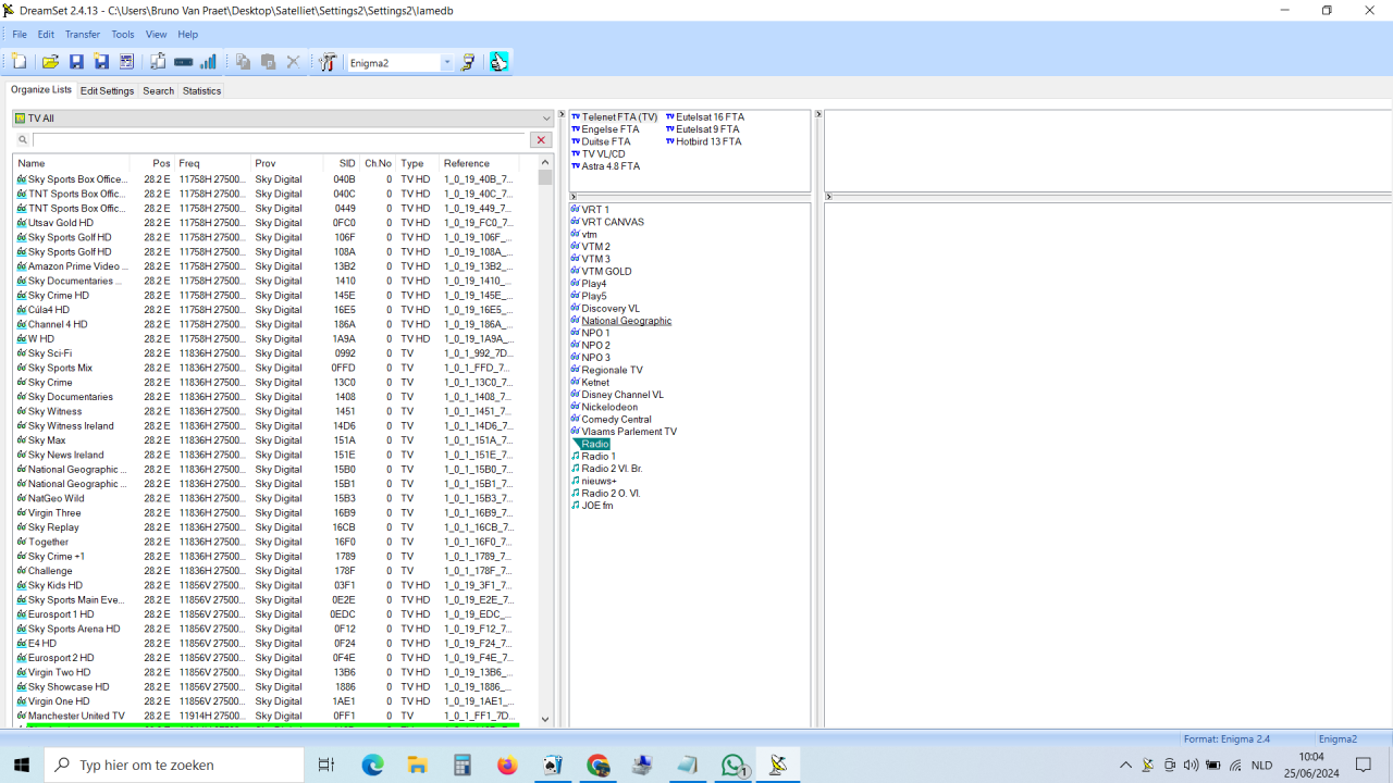 Het is me gelukt. Jouw settings zitten nu in mijn tuner. In een eerste instantie was alles nogal bizar. Maar na een hele tijd de de VU+ stroomloos te zetten (leegmaken van het RAMgeheugen). Super. Ik kan nu toch al verder. Hartelijk dank voor de moeite.