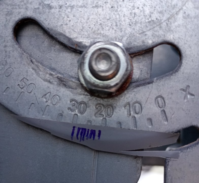 Ja waarom? Ik kon het ook vol streepjes zetten natuurlijk. Maar moet eigenlijk maar een markering hebben op 22.6°. En als ik nu de foto heel goed bekijk, kom ik tot de ontdekking dat de elevatie 1° te laag staat. Maar al met al, het is toch al een hele grote verbetering. Rest mij nu nog horizontaal uitrichten. -