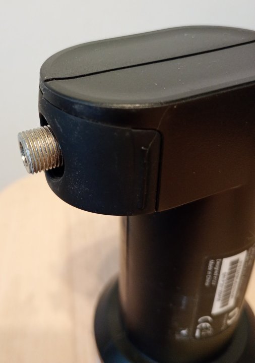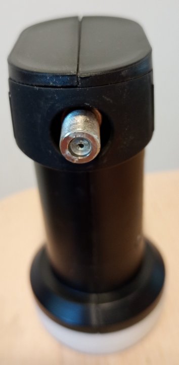 Ik wist zelfs nog niet eens dat dit bestond. Zo ziet de vorige LNB er nu uit. Wel moeilijk uit te maken hoe groen het kern gedeelte er uit ziet. Ik weet het nu ook wel dat de foto's wazig zijn. Als het opgehouden is met regenen, neem ik een statief mee. -
