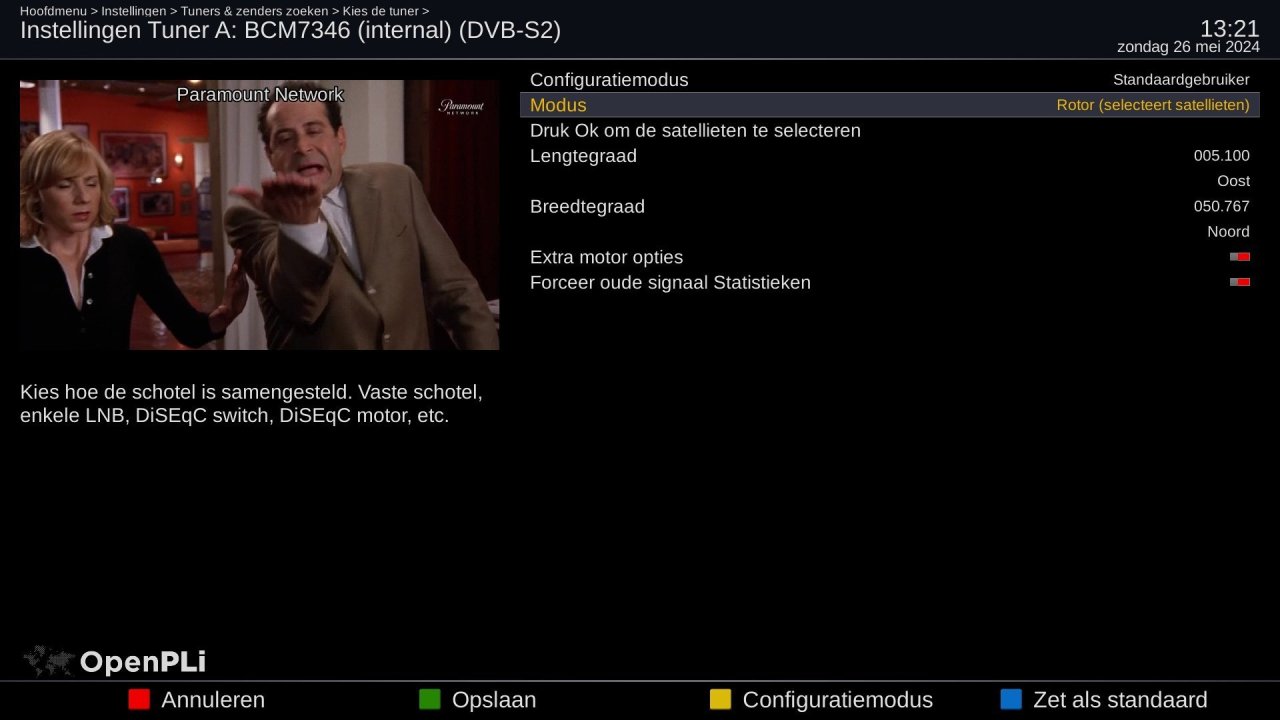 hoe kan ik de schotel b.v naar 19.2 laten draaien en hoe moet ik dat instellen