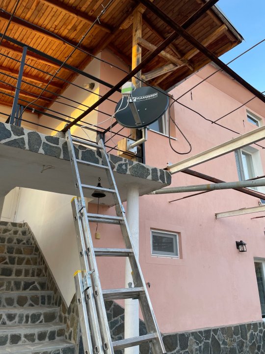 Op deze plek hebben we geen hinder . In zuid Bulgarije vraagt men een helling van 41.99 gr . Las ik hier en op de app van google satellite finder . Op deze plek heb ik ook geen last van een afwijkend kompas . Het dak hangt niet in de weg , beetje optisch bedrog . ik ga nu eten en de rest is voor morgen , ik moet wat decompresseren anders kan ik niet slapen Ciao , sorry , moeilijk focussen op beeldscherm 😅 -