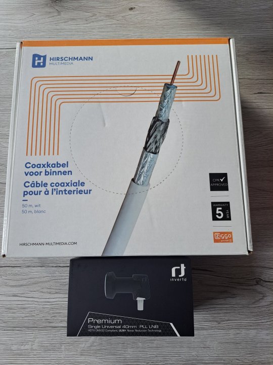 Neen ik doe het stap voor stap 😊 Ben zelf aan het kijken, deze voor binnen: Hirschmann Cc F-6-td-qm F-conn, en deze voor buiten: Hirschmann 695020307. De kabel die ik heb besteld is deze: Hirschmann Multimedia KOKA 9 Eca