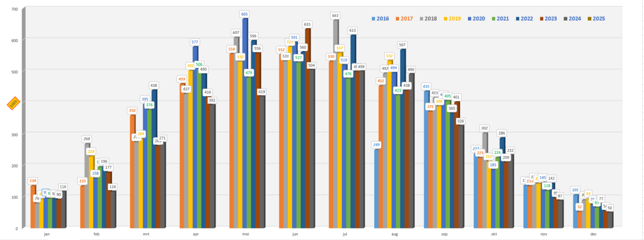 1. Dit is mijn opbrengst met 16 panelen en mag mij gelukkig prijzen dat ik nog een terugdraaiende teller heb.