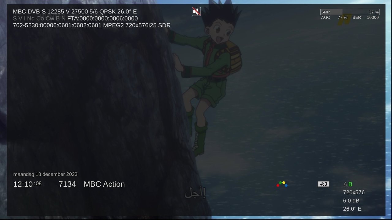 4. Schotel is Channel Master 180 cm. Zie screenshot van enkele minuten geleden. Moet er wel bij vertellen dat ik de elevatie van de schotel overdag d.m.v een actuator voor deze sat iets bij moet stellen. In de avonduren is de ontvangst meestal net iets beter.