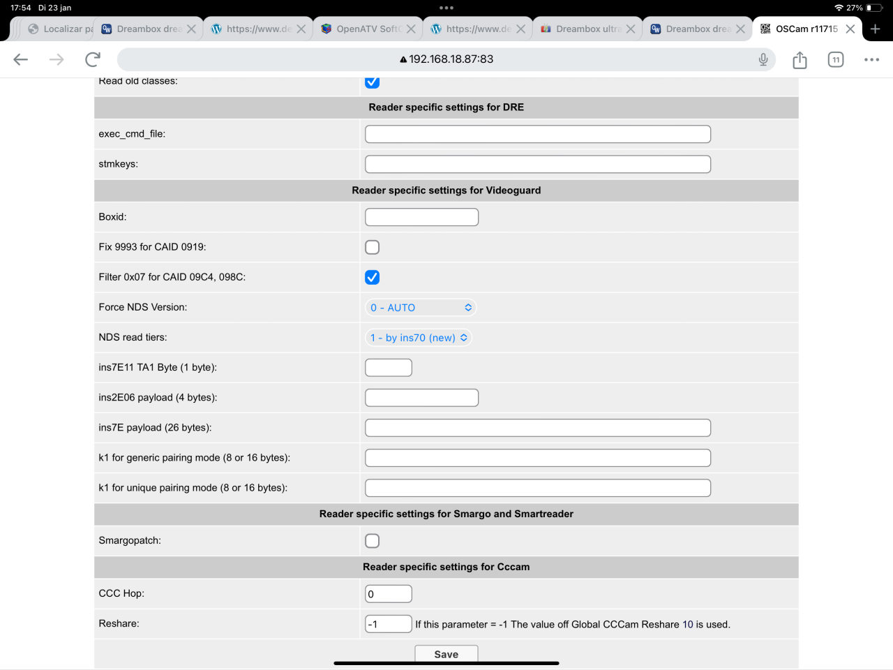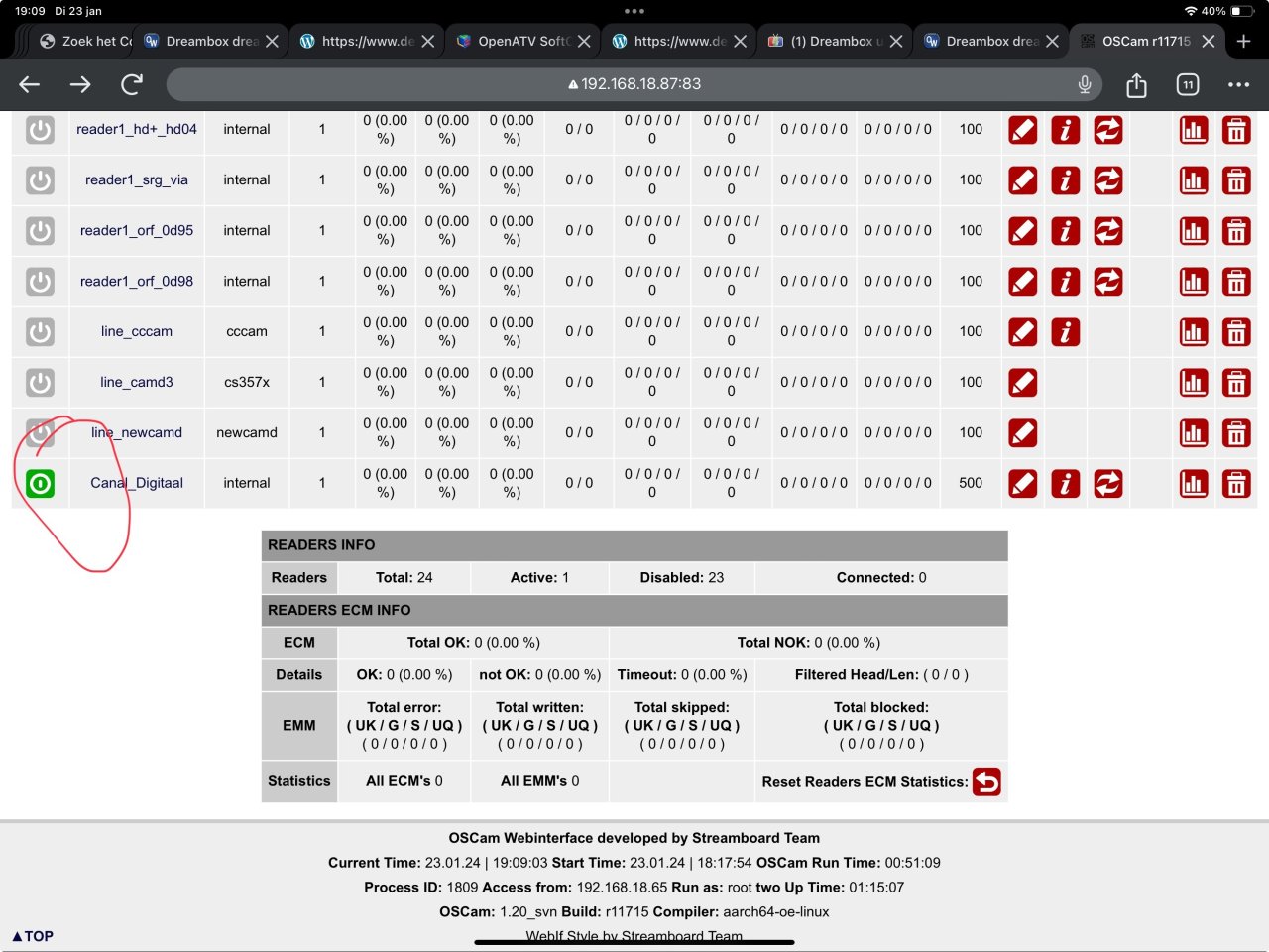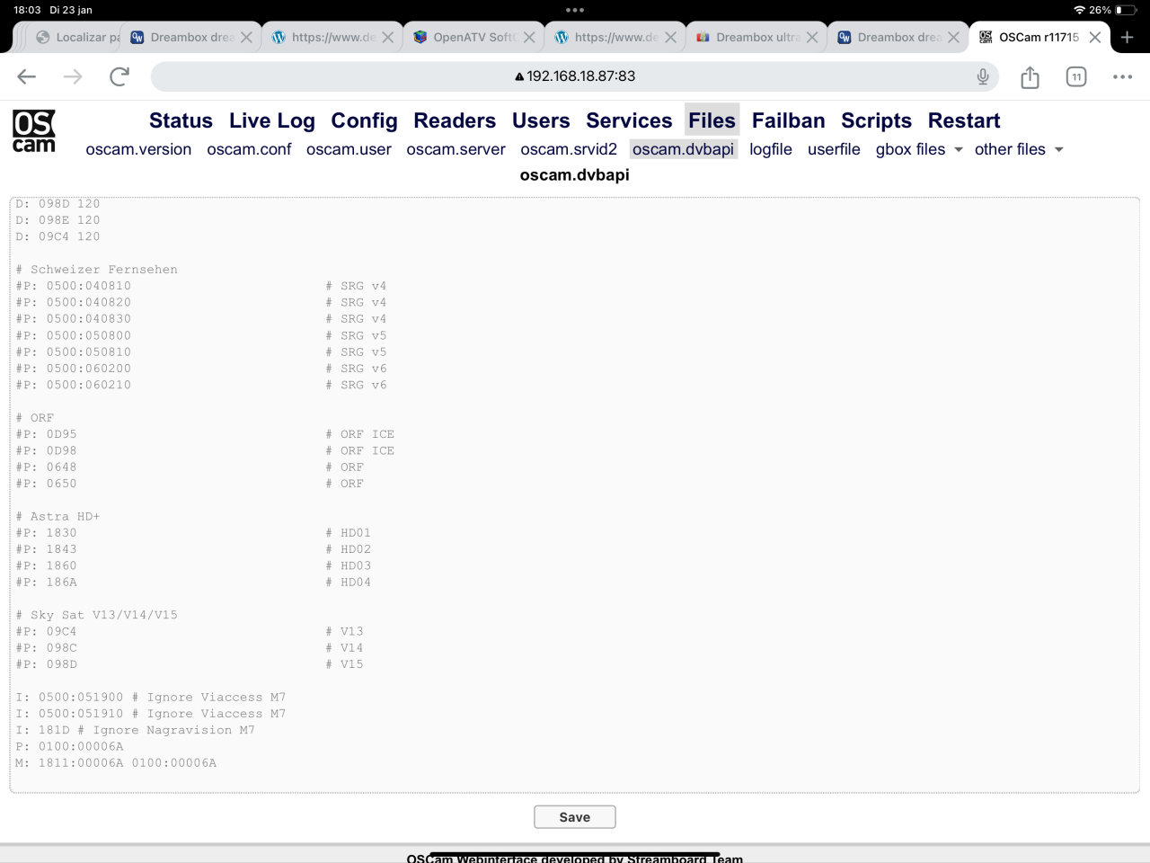 Beste lezers, Ben een beetje gestrest omdat het installeren van een softcam niet lukt. Ik heb een nieuwe dreambox ultra 2 gekocht en ben deze nu bij mijn moeder in Spanje aan het installeren. Ik heb voor het openATV image gekozen omdat ik die de mooiste vond. Helaas zit er geen softcam download sectie in deze image. Met veel moeite een ipk bestand kunnen installeren vanaf een sd kaart. (Ik heb geen windows pc hier voor putty) alleen een ipad Ik moest de bestanden meerdere malen installeren voordat er eindelijk een softcam menu verscheen. Daaruit kon ik alleen de Oscam stable installeren. Deze in het menu gevonden en op gestart. Werkende canal digitaal kaart erin maar geen beeld? eerste vraag, moet de chip van de smartcard naar beneden of beneden? tweede vraag, welke softcam moet ik gebruiken en hoe kom ik daaraan en hoe krijg ik deze op de box? stres is dat ik nog maar 2 dagen heb alles werkend te krijgen.