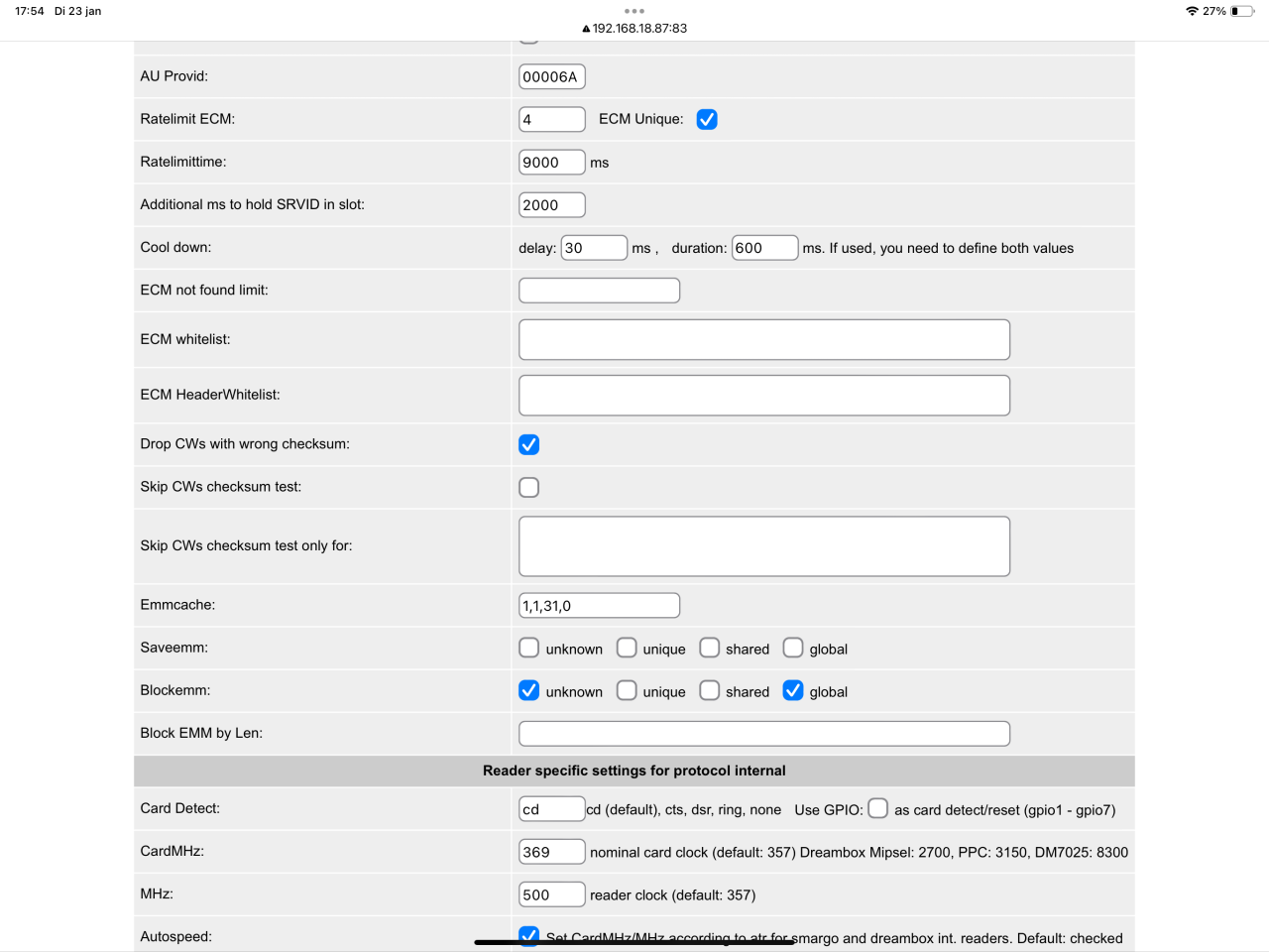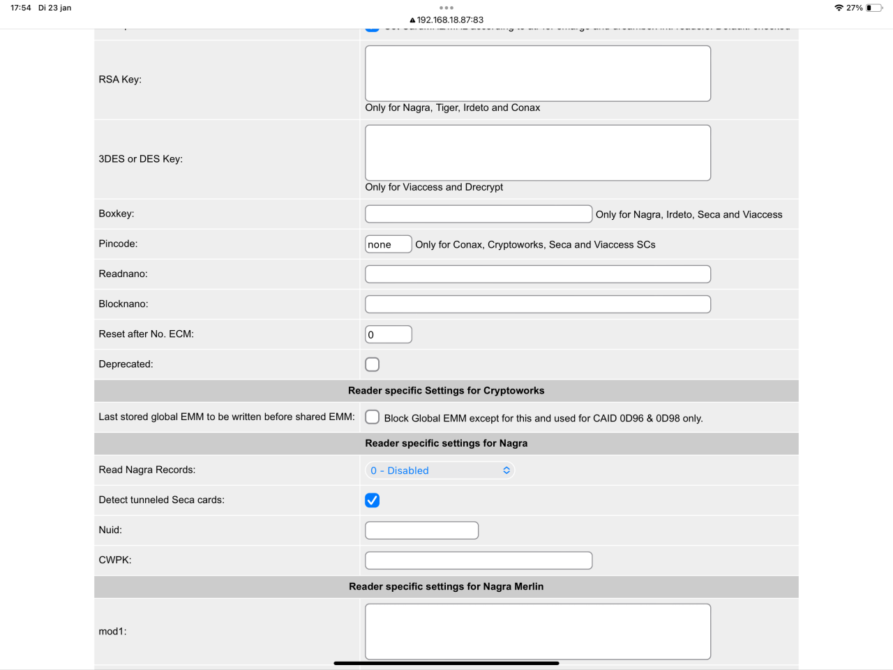 Dankjewel voor je uitgebreide reactie. Daar kan ik wat mee, Alleen kan ik de ingevulde waardes van het screenshot bij reader niet goed lezen. Dus loop ik weer vast. Het is een kaart van een werkend abonnement omdat ik de oude box vervang. Waar alles prima loopt op pli