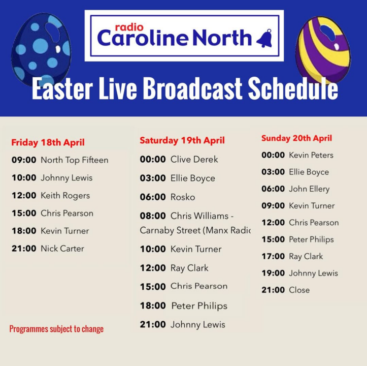 12. Vandaag, zaterdag en zondag is het weer zover. Live uitzendingen vanaf de Ross Revenge. Te beluisteren via de 648 AM of de stream van Radio Caroline North. https://www.radiocaroline.co.uk/#schedule.html
