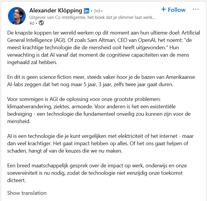 even uit het internet geplukt; wat staat ons te wachten => dus je hoeft zelf niks meer te doen en dan besluit AI dat wij overbodig zijn