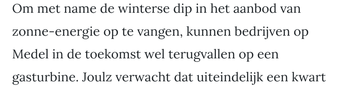 15. Dat las ik: Als de energie profielen correct zijn, de capaciteit van de batterijen ruim voldoende zijn en de panelen genoeg zijn over gedimensioneerd (en goed schoon worden gehouden!!!) dan kan het aantal starts meevallen. Echter op een winterse dag met de panelen bedekt met sneeuw, en alles verwarmen met warmtepompen, dan kan het snel anders wezen. Ga je dan de gasturbine op een lager, minder efficiënt, vermogen laten draaien, of toch de turbine max vermogen, dus max rendement, laten maken om de batterijen bij te laden en dan weer afschakelen...?