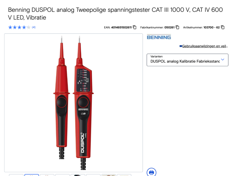 23. 72 euro, en dan heb je een goede spanningstester die ook draairichting aangeeft 🙂 . Dan op de warmtepomp op L1 en L2 meten, dan ook in de meterkast op L1 en L2 meten 😉