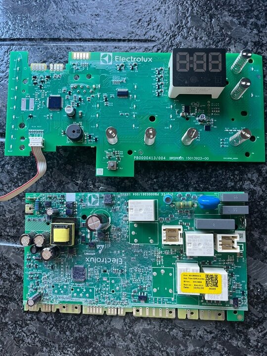 Wie kan me met helpen met een tip ivm een droogkast van AEG. De foutmelding is ontstaan na het vervangen van de rubberen wieltjes. Deze foutmelding staat voor een communicatiestoornis van tussen het bedienpaneel en de processorboard. Ik heb de spanningen al nagemeten en contole op de componenten op beide printen. Iemand een tip waar ik moet zoeken of een gepast schema van dit apparaat.