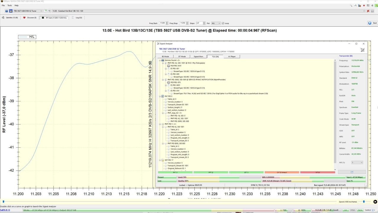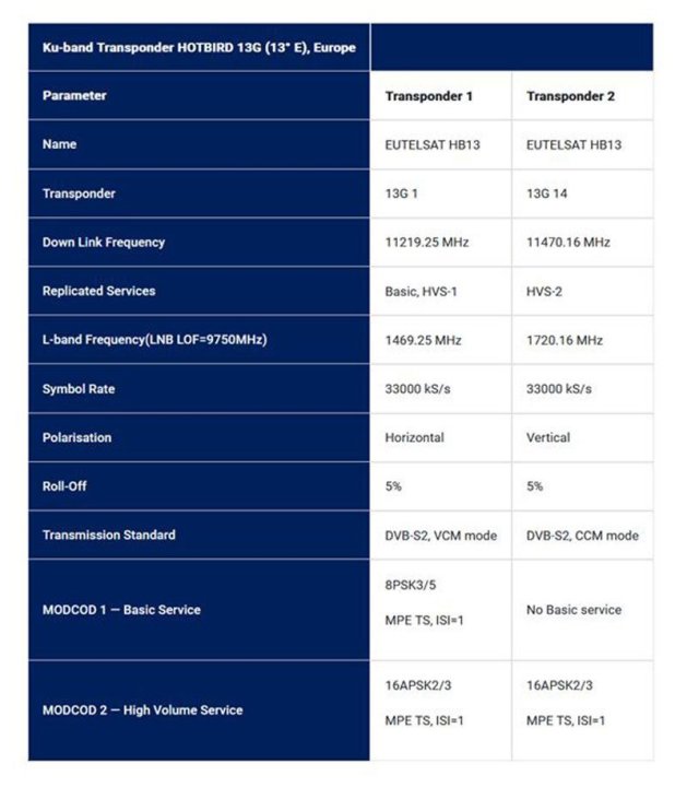 De twee TP's zijn gestart op 13,0°E ( 11219 H 33000 & 11470 V 33000 ) EUMETSat ( vroeger Meteosat ) : De Europese meteostations en meteoliefhebbers kunnen nu de data ontvangen via een meer toegankelijke satelliet. Zelf gebruik maken kan , zie hier hoe. Screenshots met EBSPro via een RF Scan. -