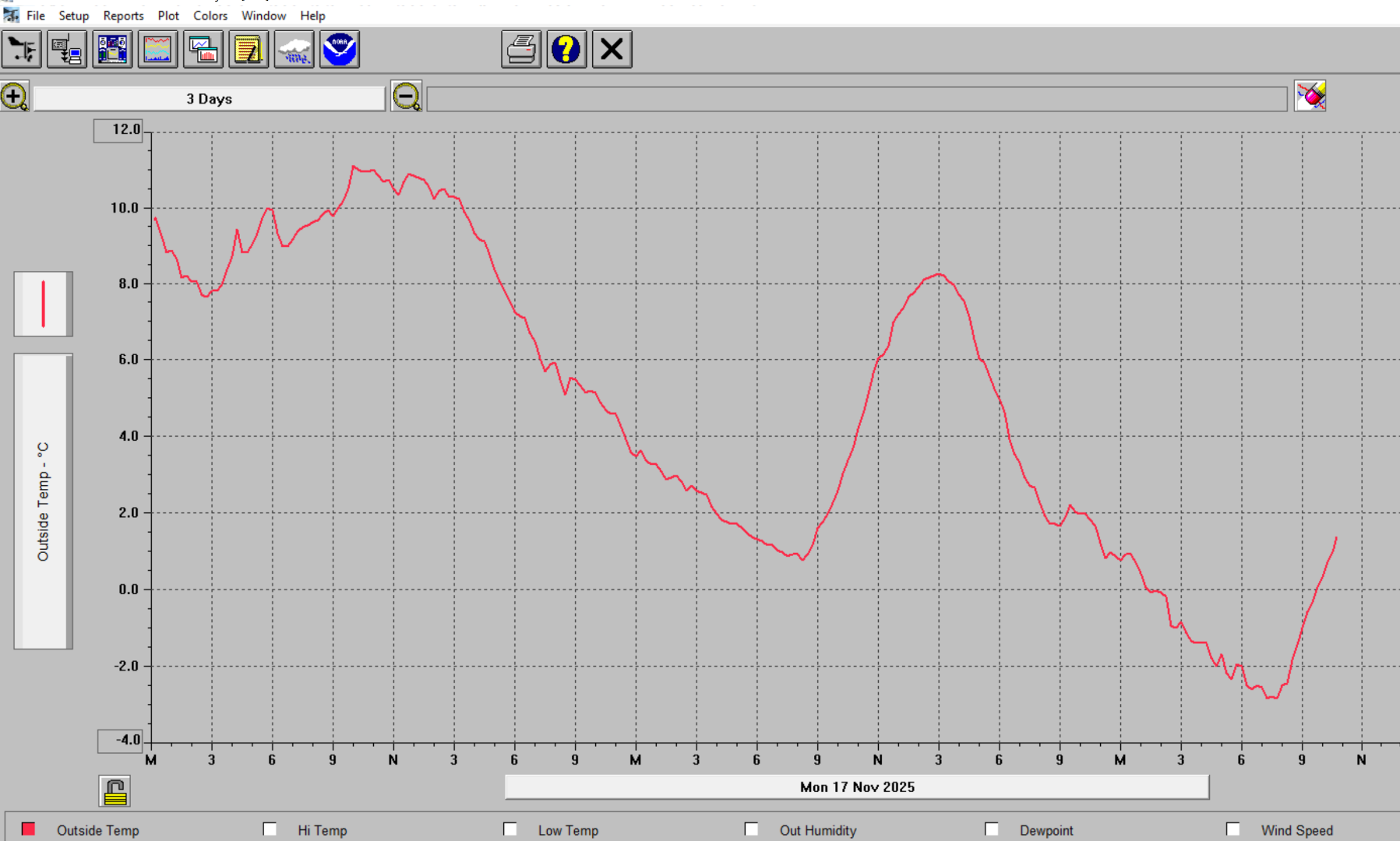 De winter is vroeg dit jaar. Tijd voor de winterbanden. Hieronder het temperatuur verloop van de laatste 3 dagen.