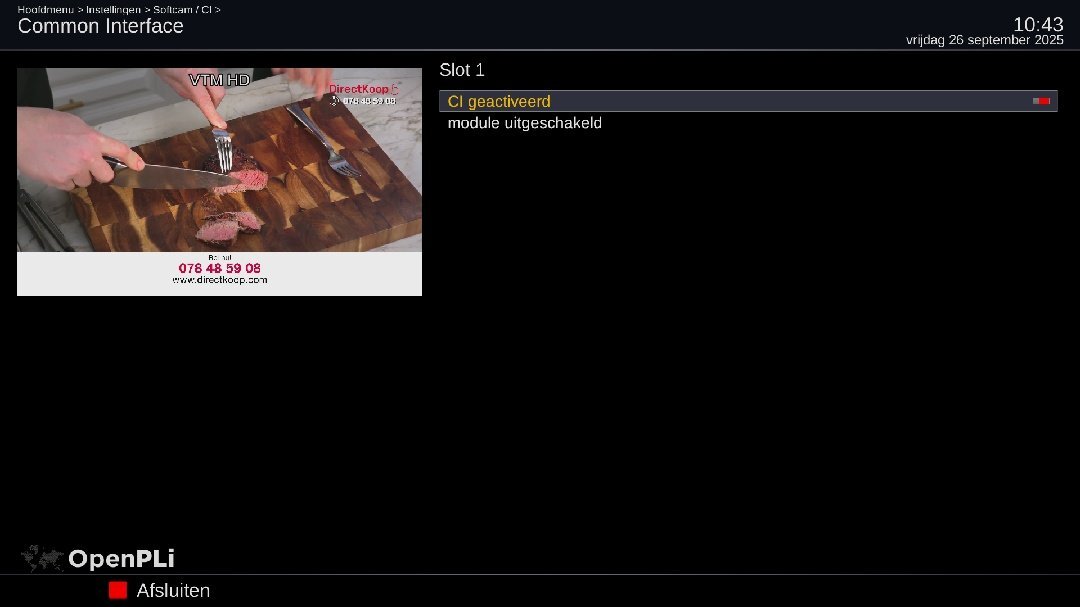 8. De beste wensen voor 2025 toegewenst. De CD 702 CI+ module werkt samen met de TVV 803 CI+ module op een AB Pulse 4K rev ii met OpenATV 7.4. Aan de CAM 803 zijn de TVV zenders toegewezen. Aan de CAM 702 zijn de CD zenders toegewezen. CI+ helper is uitgeschakeld. Het komt voor dat bij het schakelen van de TVV zenders naar de CD zenders het beeld zwart blijft. Herstarten van Enigma 2 is dan de oplossing. Mooier zou zijn dat het altijd goed werkt en een herstart niet nodig is. Is dit euvel er niet met OpenPli, OpenVix of een andere Engima2 download? Heeft iemand een oplossing?
