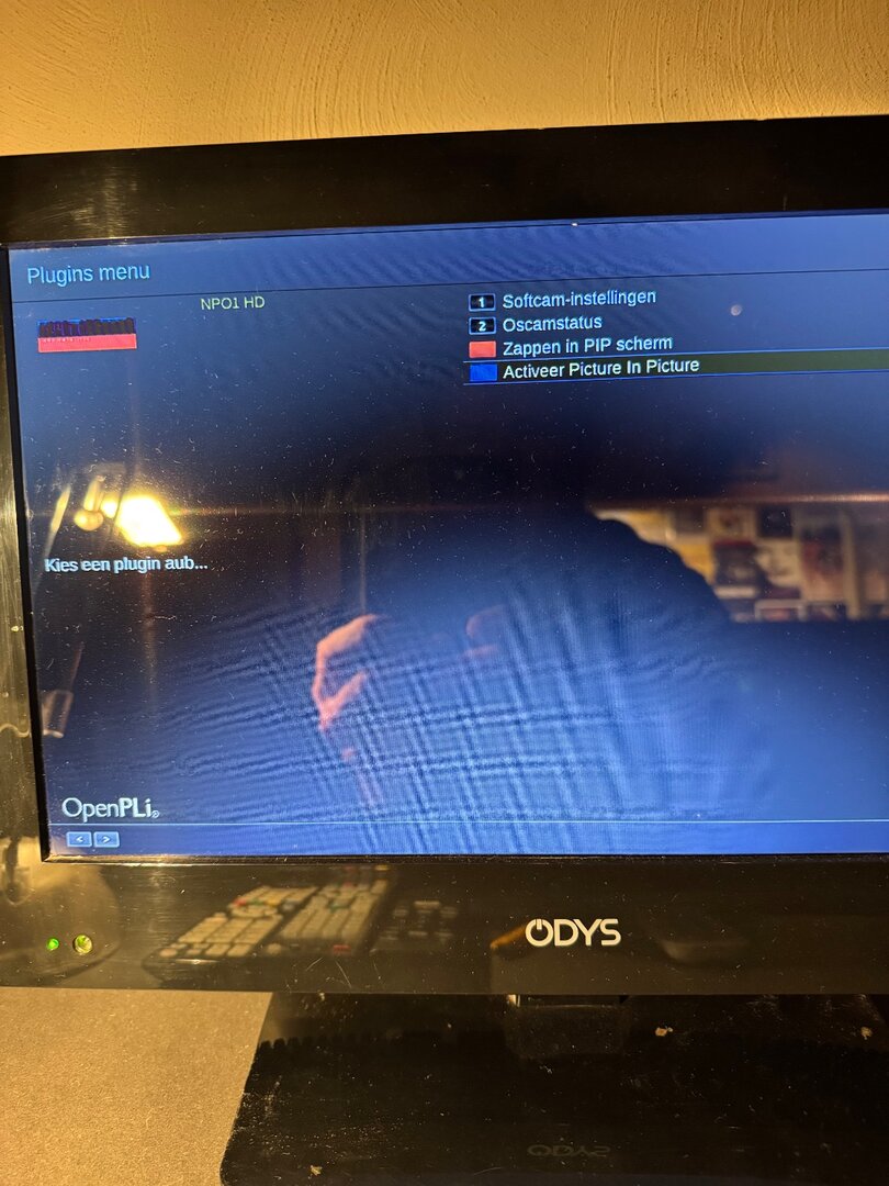 Goede suggestie (was er zelf niet opgekomen!) en we zijn misschien een stap verder. na het opstarten verscheen BVN full screen in beeld!!! Maar als ik NPO I kies (via selecteer provider) is het weer hetzelfde; een klein beeld links bovenin en bij het drukken op de blauwe knop vraagt hij (zie screenshot) om een plugin te installeren. Dus heeft het met de OSCAM te maken? (op blauwe of exit drukken veranderd niets; ik krijg dan alleen het menu te zien met PIP activeren i.p.v PIP uitschakelen)
