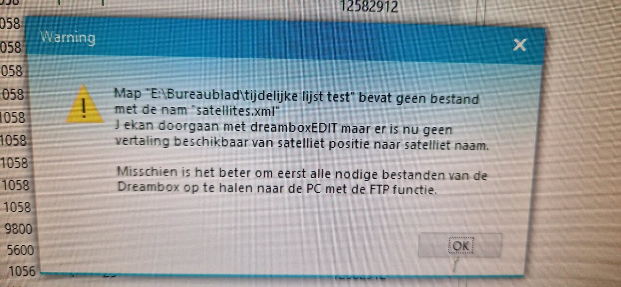 ben aan het opnemen dus bij fastscan geeft hij aan bent aan het opnemen. morgen even bekijken. thanks krijg nu weer een foutmelding in dreamboxedit bij het laden van een zenderlijst. e/a-fehler 123. geen idee wat dit is. al google geadviseerd helaas
