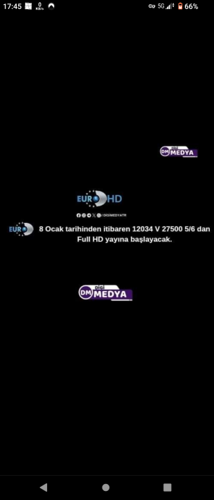 Euro D gaat vanaf 8 Januari in Full HD uitzenden! İk heb contact opgenomen met DemirÖren Media Group en ze bevestigen dat Euro D per 8 Januari 2024 in Full HD gaat uitzenden. Bron: DemirÖren Media Group (sinds kort nieuwe eigenaar van CCN TÜRK , Kanal D , Euro D ,Radyo D , Teve2 en Teve 2 Europe. ) Sat info: Türksat 4A 42° E 12034 v 27500 5/6 -