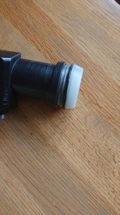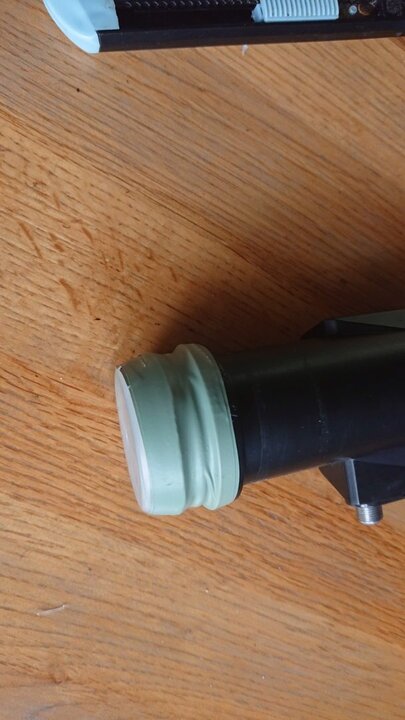 Heb eerst even 1 lnb (28e) er afgehaald en binnen bekeken. Het binnenwerk is wel degelijk van een metaal (aluminium) legering zie ik. De kapjes van meerdere lnb's hebben een barstje aan de bovenkant. Later breekt daar een stukje kunststof van af. Zie dat van het kapje de bovenste helft broos is en nogal wat verpulverd is. Kon het zo af breken. De onderste helft niet, die moest ik er afsnijden en zat nog goed vast. Dus het lijkt mij dat het materiaal niet uv bestendig is. Ben nu meteen aan de slag gegaan met een probeersel voor de 1e. Had nog een rolletje repair band voor smartphone ed. waterdicht te maken. Ook nog sterk breed tape voor reparatie van plastic folie voor o.a. tuinkassen en dat is uv bestendig. Daar heb ik een breed genoeg stukje van gesneden en na het repair band op de flens met de afgesneden kap er op gedrukt omwikkeld. Het lijkt mij degelijk genoeg zo en ga het maar proberen.