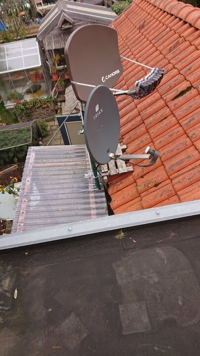 Aangezien er geen meldingen komen van anderen met dit probleem, ben ik toch nog eens nagegaan of de oorzaak bij mij zelf heeft gelegen. Ik heb 1 mogelijke oorzaak kunnen vinden. IK heb om de s connectors waterdicht te maken een stukje krimpkous gebruikt en dus verhit met een föhn. Dit heb ik al menig maal eerder zo gedaan en het is nooit een probleem geworden. Het krimpkous krimpt vrij snel met relatief lage hitte en ik kan (of kon) me niet voorstellen dat deze hitte nadelig zou kunnen zijn voor de lnb’s Wel is het zo dat de aluminium legering van deze lnb een stuk dunner is dan oudere en dus de hitte makkelijker transporteert. Maar dat dit zo warm zou worden dat deze daardoor zou inwerken op de kunststof kap heb ik niet aan gedacht, lijkt mij ook nu nog onwaarschijnlijk. Maar ja je zoekt naar een reden. Merkwaardig is dat het niet is gebeurd bij de 2 lnb’s ( zelfde type) die ik een maand eerder had aangeschaft. Inmiddels heb ik de 5 lnb’s gerepareerd (zoals eerder beschreven) ook de 2 andere zonder schade heb ik uit voorzorg voorzien van uv bestendig tape rondom. Alleen de met ene single heb ik niets gedaan. Daar kan ik later aan zien of daar niets mee gebeurd. Deze heb ik later bijgezet en is nooit met de krimpkous behandeld geweest. Inmiddels is alles weer gemonteerd en werkt naar behoren, ik heb geen blokjes meer gezien en een goed signaal op alle satellieten. Nb. bij deze foto’s is ook de Triax 80 cm te zien, die op de 16e staat. Daar zit een veel oudere Rt Inverto lnb op, die ik al meerdere keren met krimpkous en föhn waterdicht heb gemaakt zonder ( de mogelijk?) schadelijke gevolgen. Nb. voor wie zich afvraagt hoe het zit met deze opstelling, Ik heb 2 ontvangers met o.a. elk 2 satelliet tuners. Die zijn aangesloten op 5w (op1 ontvanger), 0,8w-4,8e ( op 1 ontvanger) -9e-13e-19,2e-23,5e-28,2e en de Triax op 16e aan 2 ontvangers. Foto’s, een overzicht vanuit mijn badkamer. De boom binnen na reparatie en een open Ultra PPL ,( mogelijk leuk voor Sprietje om te zien).