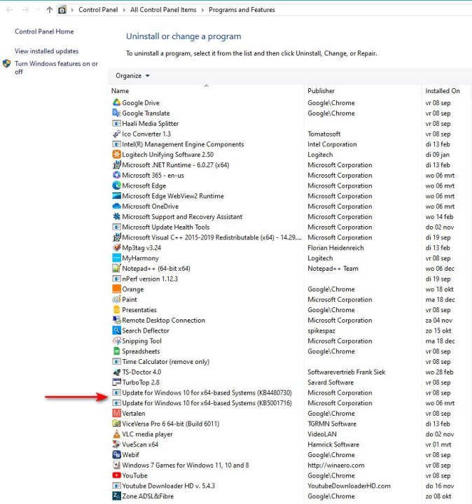 Hallo Penthe Iemand bij Neowin denkt de reden voor het installatieprobleem gevonden ye hebben : blijkbaar is die reeds installed en wordt hij steeds weer aangeboden. Ik ben eens gaan piepen in Settigs>Apps>Programs en Features En hij staat er inderdaad in. Zie bijgevoegd plaatje