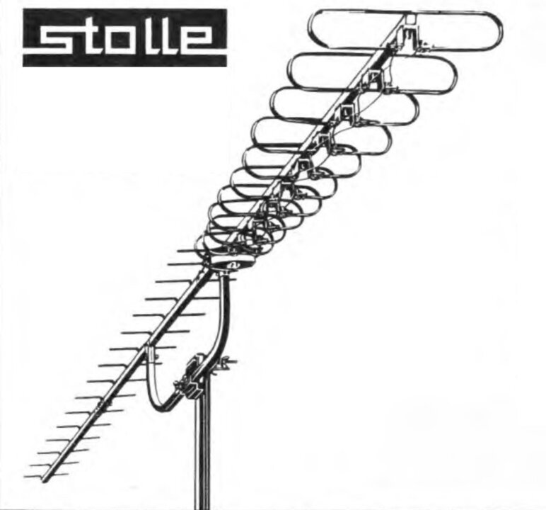 Wat OFDM schreef klopt. De antenne lijkt vol dipolen te zitten maar er is maar 1 dipool, de rest lijkt op dipolen maar is gewoon gebogen aluminium om het medium hoger te maken zodat de antenne breedbandiger wordt. Maar zo gemakkelijk kom je er niet vanaf. In 1966 bracht Stolle een antenne op de markt die wel heel veel dipolen heeft, zie de bijlage. Alle dipolen zijn met elkaar verbonden met draden wat ook goed te zien is op de afbeelding. Hoe zit dat dan met deze antenne? -