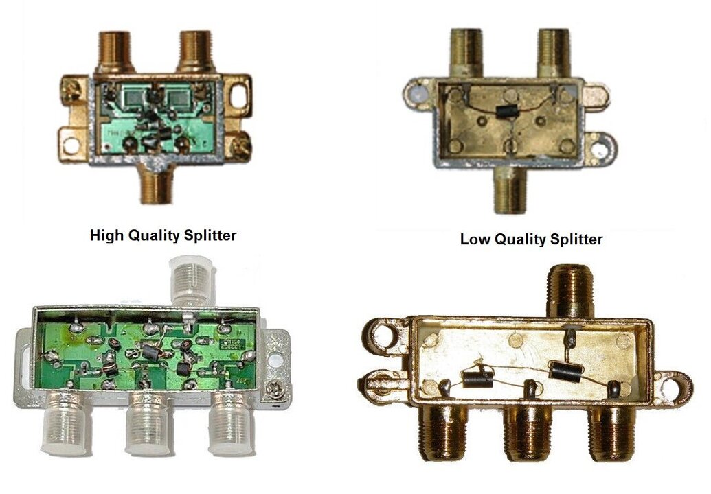 Alle waar naar zijn geld maar het is dikwijls moeilijk te bepalen wat goede componenten zijn. Specificaties vaak zijn voor wat ze waard zijn. Soms helpt het om ze open te maken. Zie zo wat er in zit. Bijv. bij deze splitters. Alleen maar wat ferrietkerntjes met grote misaanpassing of een uitgebreide print voor een juiste aanpassing Zijn de aansluitingen van de F-connectors van binnen geseald zodat er geen vocht binnen kan dringen of zijn ze niet geseald. -