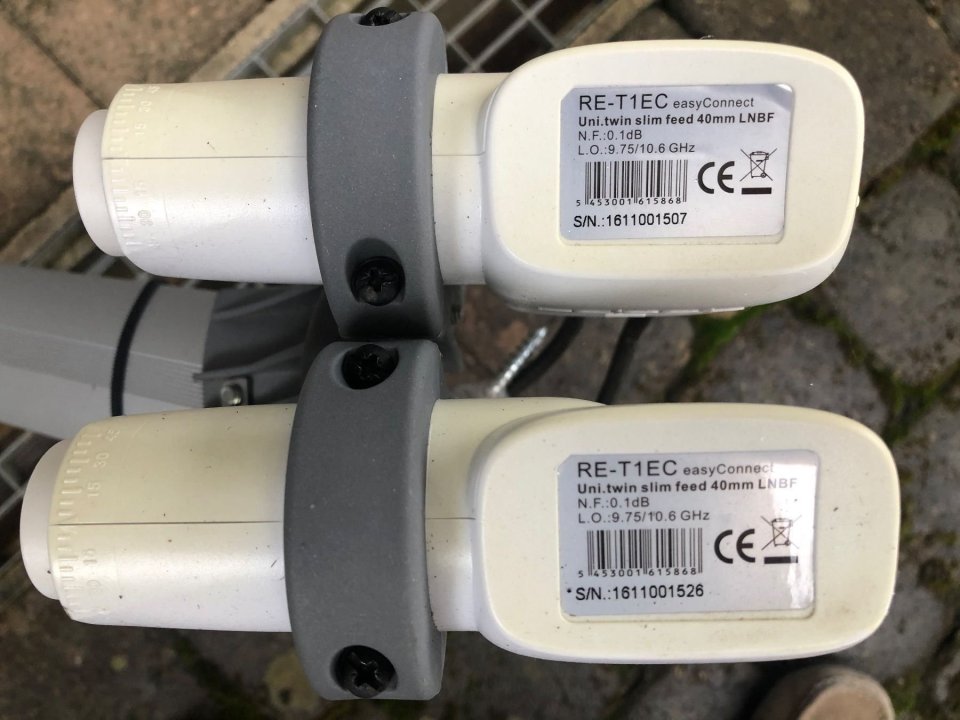 Tja, ik zou nooit gekozen hebben voor deze lnb's. Deze smalle lnb's zijn allemaal lens-lnb's en daarmee ontvang je bij regen flink wat minder signaal dan bij lnb's met een feedhorn. En niet alleen tijdens regen maar veelal ook uren erna als de regendruppels nog steeds op de kop zitten. In een regenachtige landen als Nederland en België zou ik altijd voor lnbf met kleine feedhorn gaan zoals de Inverto Ultra PLL, zie: https://inverto.tv/lnb/446/twin-high-gain-low-noise-40mm-pll-lnb Wil je het zelf even uittesten en heb je geen ontvangst als er regendruppels op de kop van de Relook RE-T1EC, wrijf met een droge doek de kop droog en je hebt weer ontvangst.