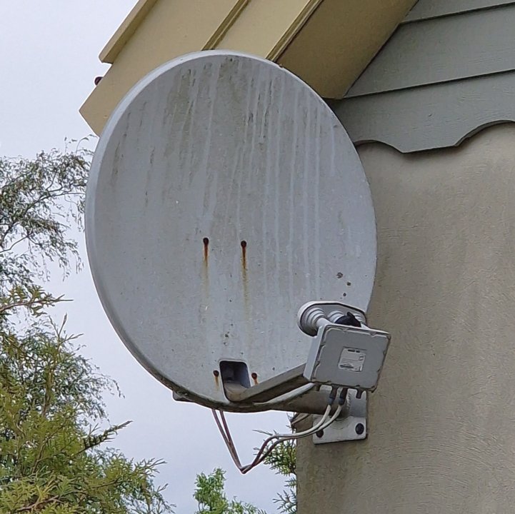 Ik zou eerst de schotel eens schoon maken, dan ontvang je al flink wat meer zenders. En kort de coaxkabels eens 3cm in want waarschijnlijk is er vocht in de coaxkabel gelopen. Je hebt de F-connectors niet afgetaped met vulcaniserende tape.