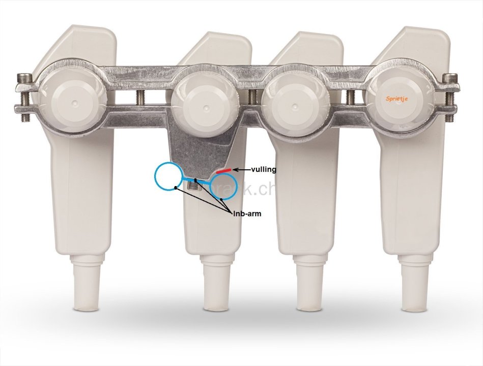 Dus geen Visiosat BigBisat schotel maar een Visiosat Bisat. Daar kunnen de Durline+ Ultra lnb's niet op omdat de 19,2 en 23,5 te dicht bij elkaar staan als je 4 dezelfde lnb's wilt hebben. Dus kiezen voor de Inverto Ultra PLL met een kop van 48mm. Verder heb je dus diseqc-switches en geen multiswitch. Je hebt dus QUAD-lnb's nodig. De lnb's staan niet goed afgesteld. Ze staan in een bolle lijn. Ze moeten in een schuine lijn staan die ietsje hol is, zie bijlage. Waar zijn de rubber beschermhoezen? Zo krijg je flink wat oxidatie op de F-connectors en mogelijk water in de coaxkabels. Waarom zijn ze aan vervanging toe? Misschien beter eerst maar eens de koppen goed schoonmaken en met autowas insmeren, nieuwe F-connectors en de coax opnieuw aansnijden ook bij de diseqc-switches. Zitten de diseqc-switches niet in een beschermhuis?