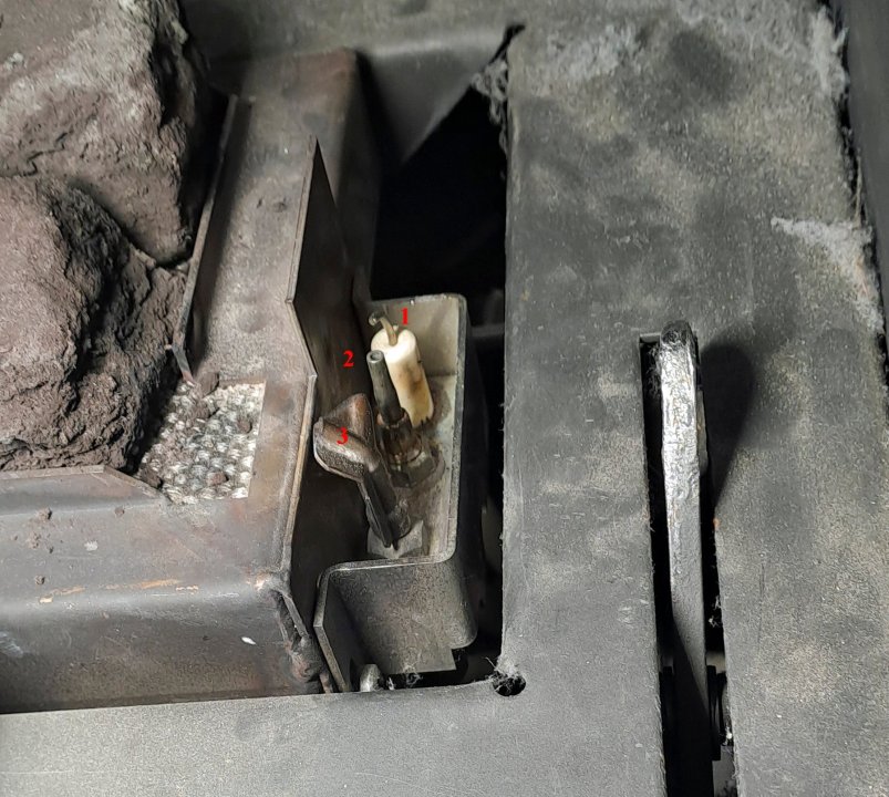 22. Door een onhandigheid van mij is de electrische ontsteking van de gashaard kapot, ontregeld of van positie veranderd. Toch werkt e.e.a. Op het plaatje zie je electroden 1 en 2,en ik neem aan dat 3 de gasnozzle is van de waakvlam die de rest van het haardvuur ontsteekt.. Als ik electrisch ontsteek. ontstaat gedurende de gebruikelijke korte periode een vonkenboog tussen 1 en 2. Verder hoor ik gedurende die korte tijd gas stromen. Wat niet gebeurt is dat er een gasvlam ontstaat, die vervolgens de haard ontsteekt. Als ik tijdens bovenstaande procedure een brandende lucifer erbij houd, ontsteekt de haard op de gebruikelijke wijze. Mijn eerste vermoeden is dat er wat gebeurd is met de positie van deze 3 componenten, en misschien is 3 per ongeluk gedraaid hoewel die stevig vast lijkt te zitten. Iemand een suggestie?