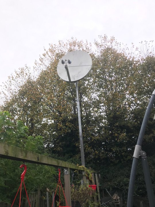 @Alex1970De schotel is afgesteld door de paal te kantelen, bijstellen, mast rechttrekken en checken of het resultaat goed was. Daar is wel veel tijd in gaan zitten, maar de aanhouder wint he. Op de foto de 1,8m.