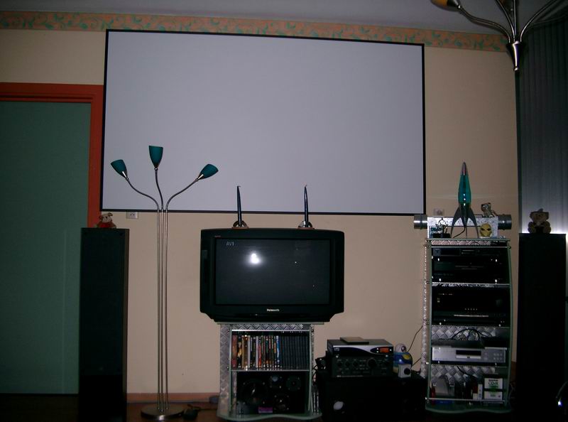 Gast Geplaatst: 9 mei 2004 Geplaatst: 9 mei 2004 Ik bedoel ermee te zeggen dat je geen speciale verf hoef te gebruiken ik had gewoon een witte structuur muur en is goed om naar te kijken. Maar zoals met elke hobby wil ju toch meer,beter,en de beste resultaat horen en zien <img src="/ubbthreads/images/graemlins/cool.gif" alt="" /> dus dan kom je al gauw op een inderdaat goed scherm <img src="/ubbthreads/images/graemlins/grin.gif" alt="" /> kost wat maar zeker de moeite waard. En dat krom trekken licht aan de constructie van het scherm ik heb het doek op een houte constructie gespannen dus niks krimpen, uitzetten, of krullen <img src="/ubbthreads/images/graemlins/biggthumpup.gif" alt="" />