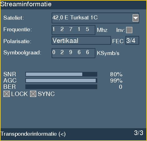 Hendrikb Geplaatst: 17 april 2005 Geplaatst: 17 april 2005 Met mijn DM7000 ontvang ik Haberturk prima (snr 80). NTV geeft een knipperend beeld. Bij streaminfo zie ik dan de snr steeds varieren tussen 45 en 80 . Zo ook zie ik dan de lock/sync aan en uitgaan. Hendrik DM 8000HD ,Triax 110 cm schotel met MTI twin lnb,Moteck SG-2100 motor.