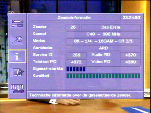 Gast Geplaatst: 23 april 2005 Geplaatst: 23 april 2005 Hier met een raster antenne die op Arnhem gericht staat nu ook ontvangst op kanaal 48 digitaal voor het FTA WDR boeket. Ik heb een ontvangst sterkte van 62% en een ontvangst kwaliteit van 43%. Wat met opvalt is het veel scherpere beeld in vergelijking met Digitenne. Verder zou ik met deze waarden bij Digitenne van die hikjes in het geluid hebben. Deze Duitse zenders blijven vloeiend in beeld en geluid! Misschien moeten we toch maar wat beter gaan afkijken bij de buren. Wanneer kan ik TV Gelderland digitaal via digitenne gaan ontvangen?