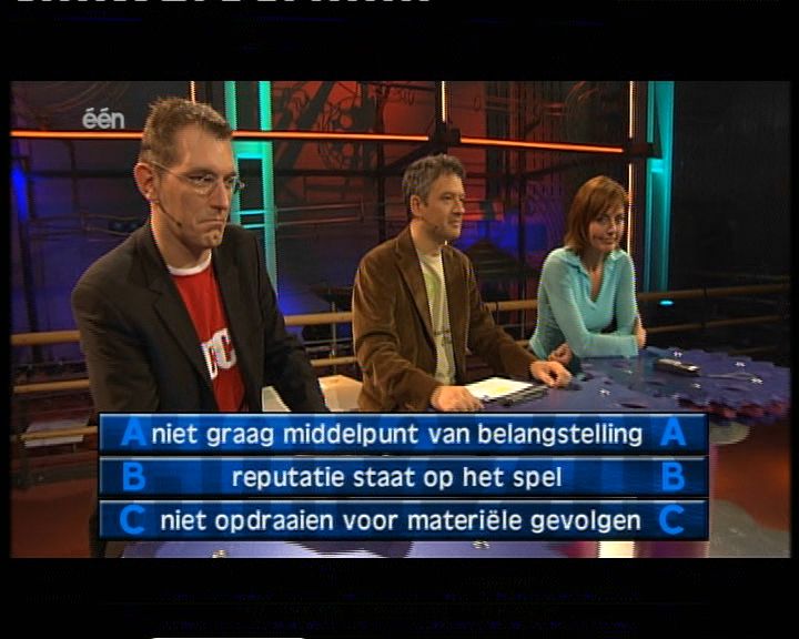 Gorilla King Geplaatst: 17 april 2005 Auteur Geplaatst: 17 april 2005 Citaat: Moet dat niet zijn: 7 Oost? Ik vind Belgische tv op Nilesat niet zo voor de hand. Sorry, sorry <img src="/ubbthreads/images/graemlins/blush.gif" alt="" /> <img src="/ubbthreads/images/graemlins/blush.gif" alt="" /> is natuurlijk eutelsat W3 op 7E. Excuus! Verder had ik de programmainfo van de website van de vrt, dus dat is wel aktueel denk ik. En ja, de uitzending is nog steeds in de lucht. Ik heb het zelf nog niet op min Topfield geprobeerd, maar krijg hem dus te pakken met Progdvb op de Skystar2-kaart. Deze kan itt tot de Topfield het 4:2:2-formaat aan, dus het kan goed zijn dat het daarom niet te ontvangen is. Even een pic om te laten zien wat er nu op dit moment op is.