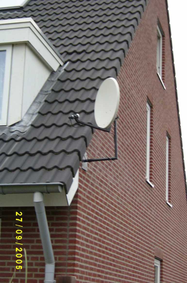 Gast Geplaatst: 5 december 2005 Geplaatst: 5 december 2005 Citaat: De totale hoogte van de installatie mag drie meter zijn en de schotel 2 meter. Met de total hoogte van de installatie wordt NIET bedoeld vanaf de grond maar de installatie zelf. Met een kleine aanvulling, zie foto. Twee schotels staan op het dak op een voet, de hoogte vanaf het dak telt. Daarnaast de schotel op een mast, hiervan geldt de hoogte vanaf het hoogste bevestiginspunt aan de muur tot bovenkant schotel. Dat is zo ongeveer 3 meter