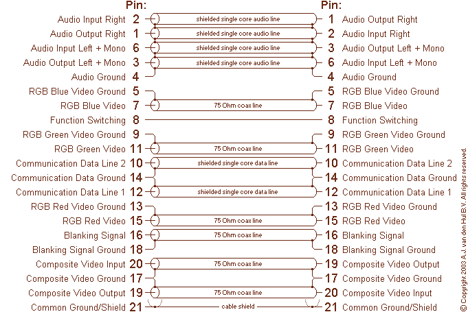 Snuffer Geplaatst: 9 november 2005 Geplaatst: 9 november 2005 Het gaat zonder meer neem van de scart aansluiting naar de connector van de Monitor de volgende draden Scart Monitor 21 Massa 20 5 19 2 18 8 8 3 De monitor werkt nu perfect. en de beelden van de ontvanger of ander toestel met een scart levert nu beelden aan de monitor. Nu niet komen met de mails van ja maar ! HET WERKT o ja die kabel die zoveel kost word op het internet aangeboden voor 20 Euro nieuw en de kabel met de aansluitingen zoals hier vermeld 4,95 Euro TBS IPTV FEEDS NETWERK MAKEN .