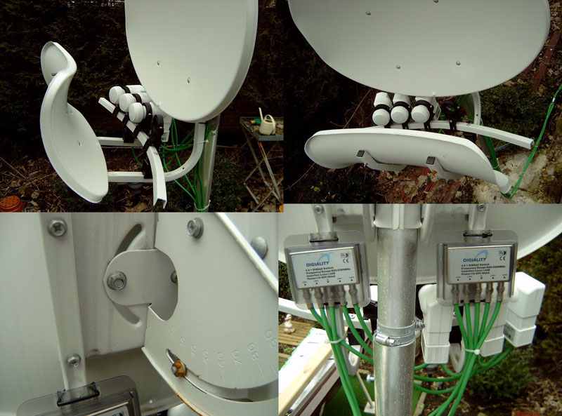 Gast Geplaatst: 24 maart 2006 Geplaatst: 24 maart 2006 Hardware: Om de satellieten vinden : Topfield TF5000CI + klein CRT Thuis : DBOX2 DiSEqC SPAUN SAR 411F DiSEqC 2.0 Ik heb goede 4x LNB`s van 02dB Edision TL-5 TWIN Kabel 120dB 1. nulpunt HOTBIRD ( signaal Topfield: NIVEAU 77% KWALITEIT 99% , dbox ) 2. HOTBIRD , ASTRA1 , ASTRA2 , SIRIUS 3. stap1: T90 Waterpas stap2: elevatie afstellen : omdat er op mijn Wavefrontier geen graden aanduiding is , heb ik de buis berekend doormiddel van waterpas en driehok met gradenaanduiding ( die staat op 4gr afwijking ) deus heb ik de schotel op 34.5gr gedaan en vastgezet. stap3: Hotbird staat om O gr op de T90 , en begon met de chotel te draaien om de HOTBIRD te zoeken. Topfield TF5000CI Topfield: NIVEAU 77% KWALITEIT 99% stap4: Vervolgens heb ik de buitenste LNB satelliet ASTRA2 28.2 bevestigd. Als je kijkt van achter de schotel naar rechts op de LNB rail 15gr van de HOTBIRD LNB. ( de LNB heb ik op geprobeerd op de LNB- houder 10gr naar links en rechts te draaien om de ASTRA2 te vinden) step5: Skew afregelen : Topfield TF5000CI op ASTRA2 gedaan en dan de schotel naar recht en links geprobeerd te draaien om iets te vinden 4. DiSEqC staat in de Topfield TF5000CI op UIT , want ik heb hem direct verbonden zonder de DiSEqC te gebruiken. 5. DiSEqC SPAUN SAR 411F DiSEqC 2.0 Ik hoop dat dat alles beetje duidelijk is? Met Vriendelijke Groet