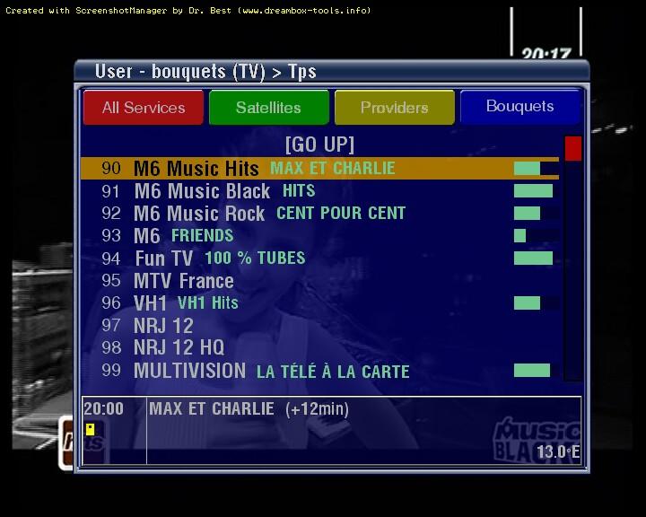 mobieltje Geplaatst: 25 april 2007 Geplaatst: 25 april 2007 Citaat: Ok kanalenlijst beeld. @Miro Geweldige skins, ik heb alleen een vraag over de kanalenlijst_skin zie bijlage, De keuzebalk is geel en de tekst "M6 Music Hits" zwart, maar de overige tekst "MAX ET CHARLIE" is groen en moeilijk te lezen. Is dit eenvoudig aan te passen? Groetjes, Mobieltje