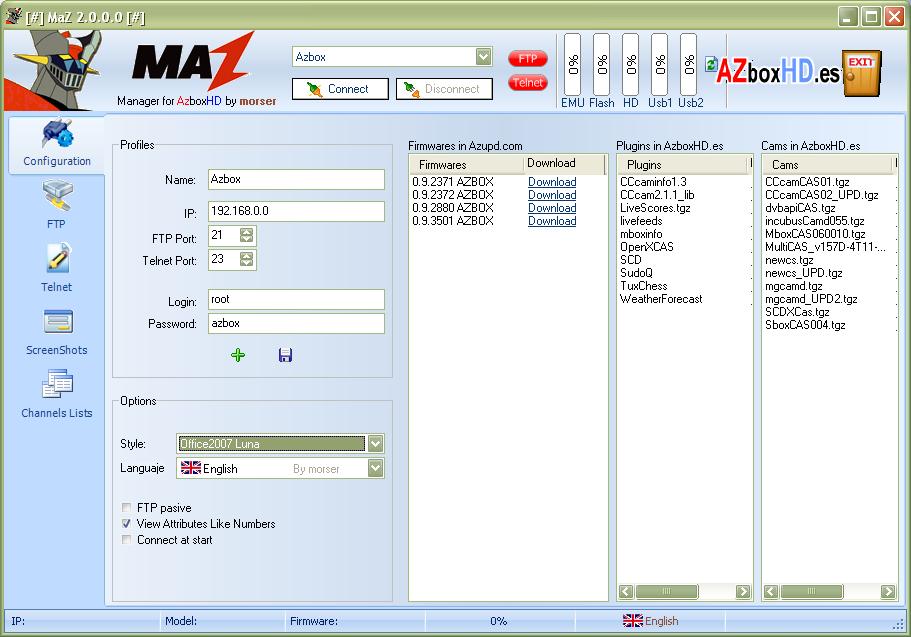 wian Geplaatst: 13 oktober 2009 Geplaatst: 13 oktober 2009 Met dit programma kun je je AZbox beheren. MaZ see. 2.0 Manager for AzboxHD by Morser - Added a button to telnet to the clipboard to copy the contents of text framed in the console window. - Added the modification of satellites and transponders - Ability to massive changes in satellites like putting selected satellites USALS motor mode or enable / disable the LNB feed. - Ability to search our coordinates giving the name of our city or village. - In the lists of favorites, if we try to add a channel that already, do not re-add. - Added the copy to favorite channels or favorite lists complete and attach them to other lists (in the destination list must be the channel or did not stick). - Added power also capture images from TV (no video, only static images) - Added the creation and modification of reservations for recording - Added a list of recorded programs with the ability to delete or download to your PC. - Added multilanguage support maz20.zip maz20.z01.zip hobby4all