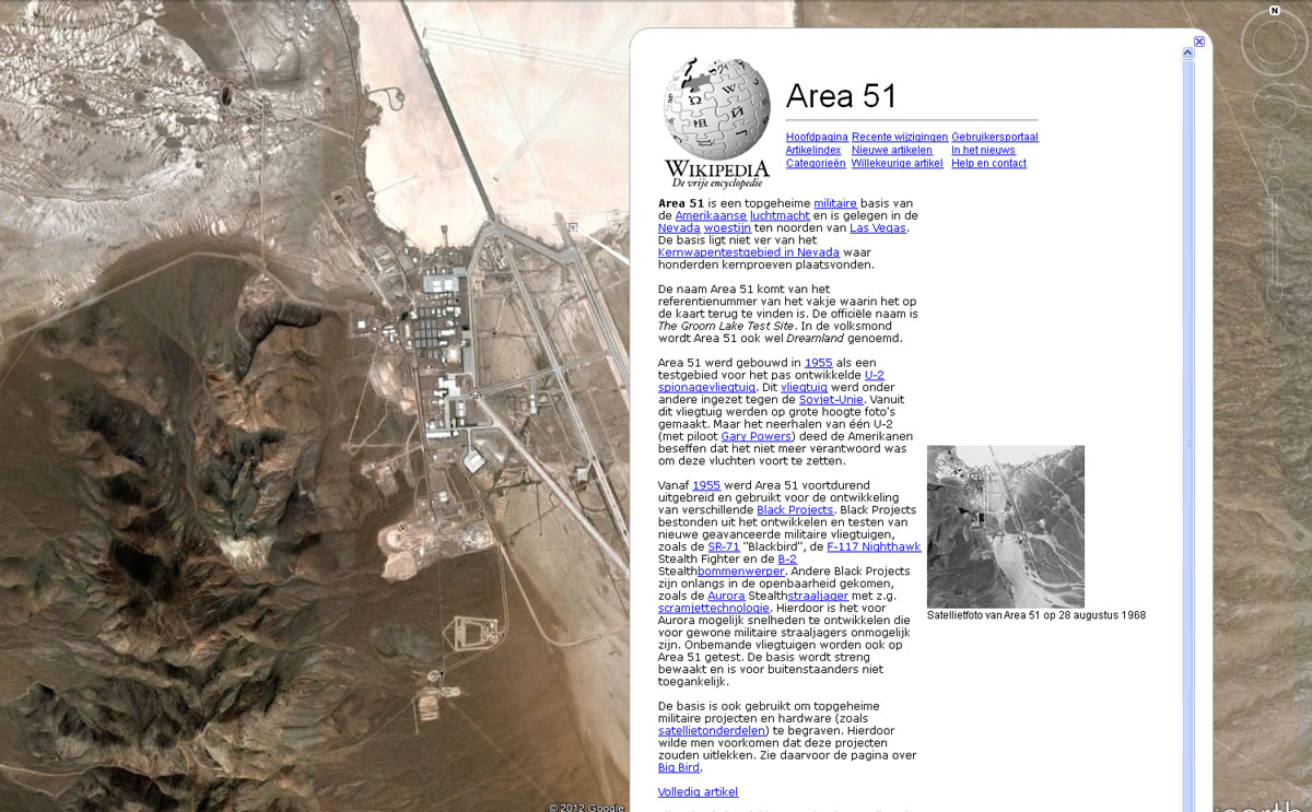 Gene 1225 Geplaatst: 11 februari 2012 Geplaatst: 11 februari 2012 Ja , uiteraard . En wat we niet zien : alles wat militair geheim gehouden moest worden , inclusief de "Roswell slachtoffers" . maar je had ook kunnen antwoorden : "Groom Dry Lake" , want dat viel net buiten het plaatje Crazy sat mag verder ... Groeten , Gene. Kabel: Orange. Schotel: Vu+ UNO 4K SE , TVV , Triple Quad