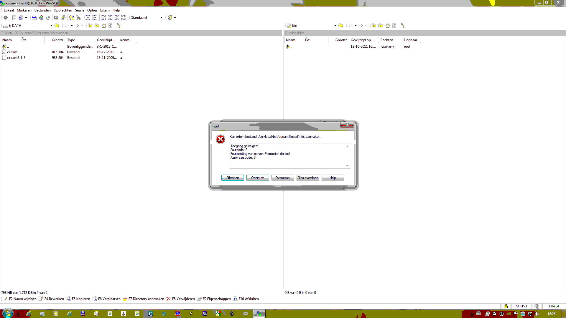 Was al blij dat ik de bestanden kan kopieren maar wie heeft hier een oplossing voor.Trouwens cccam draait al wel op de server. Kaart moet ik nog uittesten maar wil dit met phoenix reader doen.Ik moet alleen nog even zoeken in de berg met oude programmers .