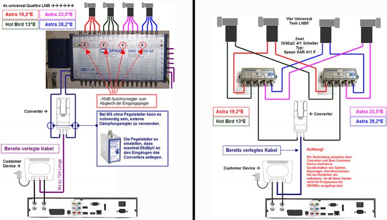 “Traditioneel doe je dat dan met 4x quattro LNB's en 16 kabels.”