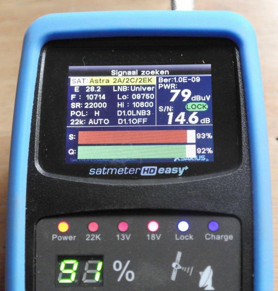 28.5   diseqc 3  11.935 V  S/N 7.6  iets omhoog kantelen van deze kop had een positief effect , maar door de schotel iets naar het oosten te drukken , werd dit S/N 9.1