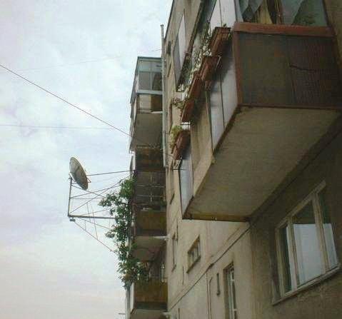 Zuppelan Geplaatst: 23 februari 2013 Geplaatst: 23 februari 2013 Een manier om zo'n probleem op te lossen is de schotel verder te laten uitsteken, zodat er meer ruimte is om de hoek naar de 23 oost te maken. Er zijn natuurlijk praktische grenzen hoever dat mogelijk is. Je zou je zinnen daarom moeten zetten op het dak van het gebouw. Dat is de ideale plaats om een schotel te plaatsen. In mijn studententijd hebben we ook ooit eens zoiets geflikt: Even een sleutel naar het dak van de studentenflat regelen, schoteltje plaatsen. Vanaf de grond was dat niet direct zichtbaar, en voor wie wel op het dak komt: Na een tijdje denkt men dat het zo hoort. Kabels keurig netjes wegwerken, niemand heeft er ooit iets van gezegd.