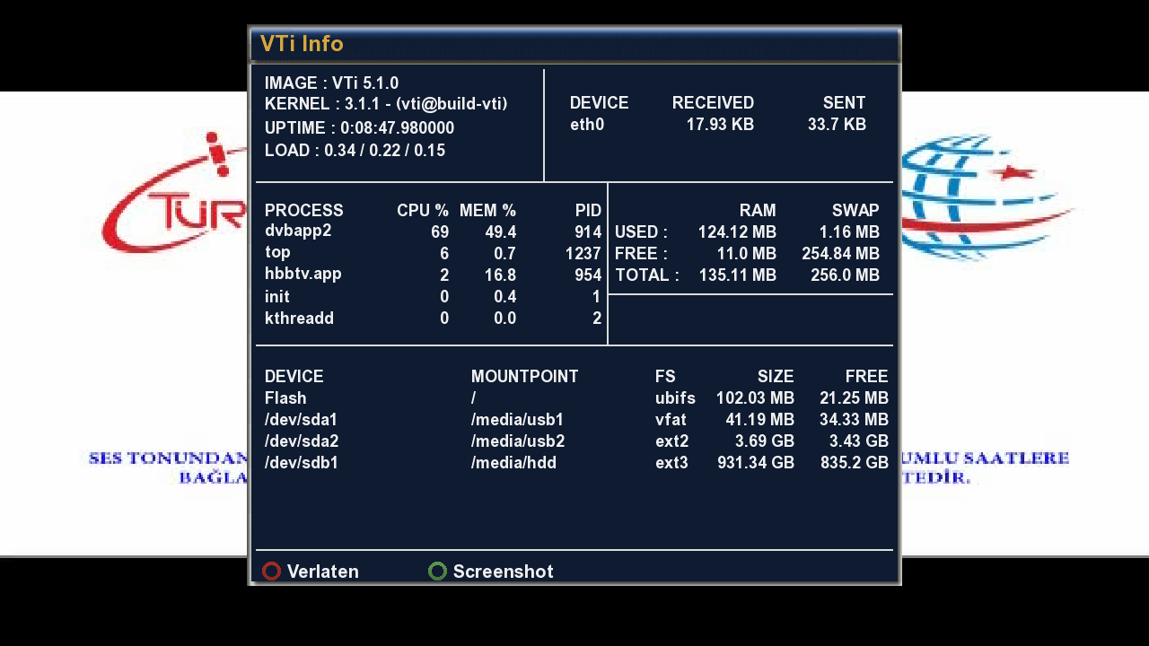 Bijna bovenaan kom ik dit tegen:  ubi0: rootfs en hoe meer picons ik download, hoe minder geheugen ik heb.