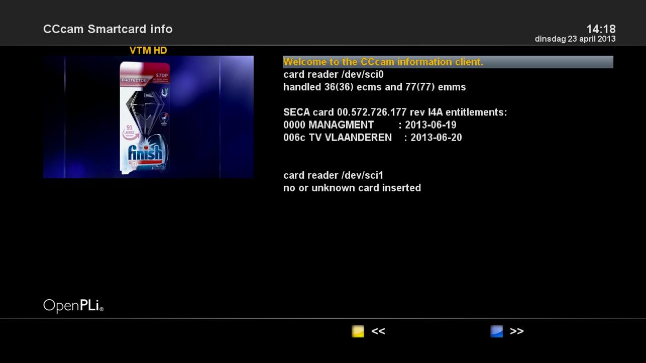 d) om de VU+ een smartcard (noemt men dat) van een paytv provider te kunnen laten lezen installeren we uit de feed (de standaard ingestelde download van plugins en applicatie) natuurlijk ook een passende softcam _