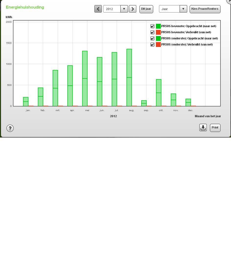 jeevanhoof Geplaatst: 25 juli 2013 Geplaatst: 25 juli 2013 (aangepast) Hoi, als je niet zo veel plaats hebt op je dak, kan je naar HR panelen gaan. Enkel Sunpower en Sanyo hebben deze panelen. Ze zijn wel duurder maar wekken meer op per M². Ik heb 9.54 KWp op mijn dak liggen en dit is de opbrengst van vorig jaar. In september heeft mijn monitoring er een tijdje uitgelegen, maar dat is normaal bij oktober bijgeteld. untitled.bmp 25 juli 2013 aangepast door jeevanhoof dreambox two , BigBisat met Smart Titanium, Alps, en 2 X Inverto Black Ultra VU+ solo2 met defecte tuners