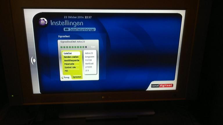 Sprietje Geplaatst: 9 september 2013 Geplaatst: 9 september 2013 Nee, dat gaat niet. Hoe ver de koppen van elkaar moeten staan hangt af van de schotelmaat en waar de schotel ergens in Europa staat. Voor de schotel van 90cm breed en 100cm hoog had ik het voor je uitgerekend voor Alicante dat een monoblock precies past maar dat past zeker niet op een schotel van 75x80cm. Die 75cm-schotel die je hebt, is gewoon te klein in Alicante. Daar kun je de makkelijke transponders van de Astra 23,5 mee ontvangen maar niet de zenders die met DVB-S2 8PSK worden uitgezonden. Eurosport HD en History HD kun je er helemaal niet mee ontvangen omdat die ook nog een FEC van 3/4 hebben. Je zult echt een grotere schotel moeten hebben. Bovendien wil je toch ook niet dat als het een keer zwaar bewolkt is of een beetje regent, dat het beeld weg valt? Nu komt dat niet vaak voor maar dat zijn meestal wel de momenten dat je misschien de TV aanzet.